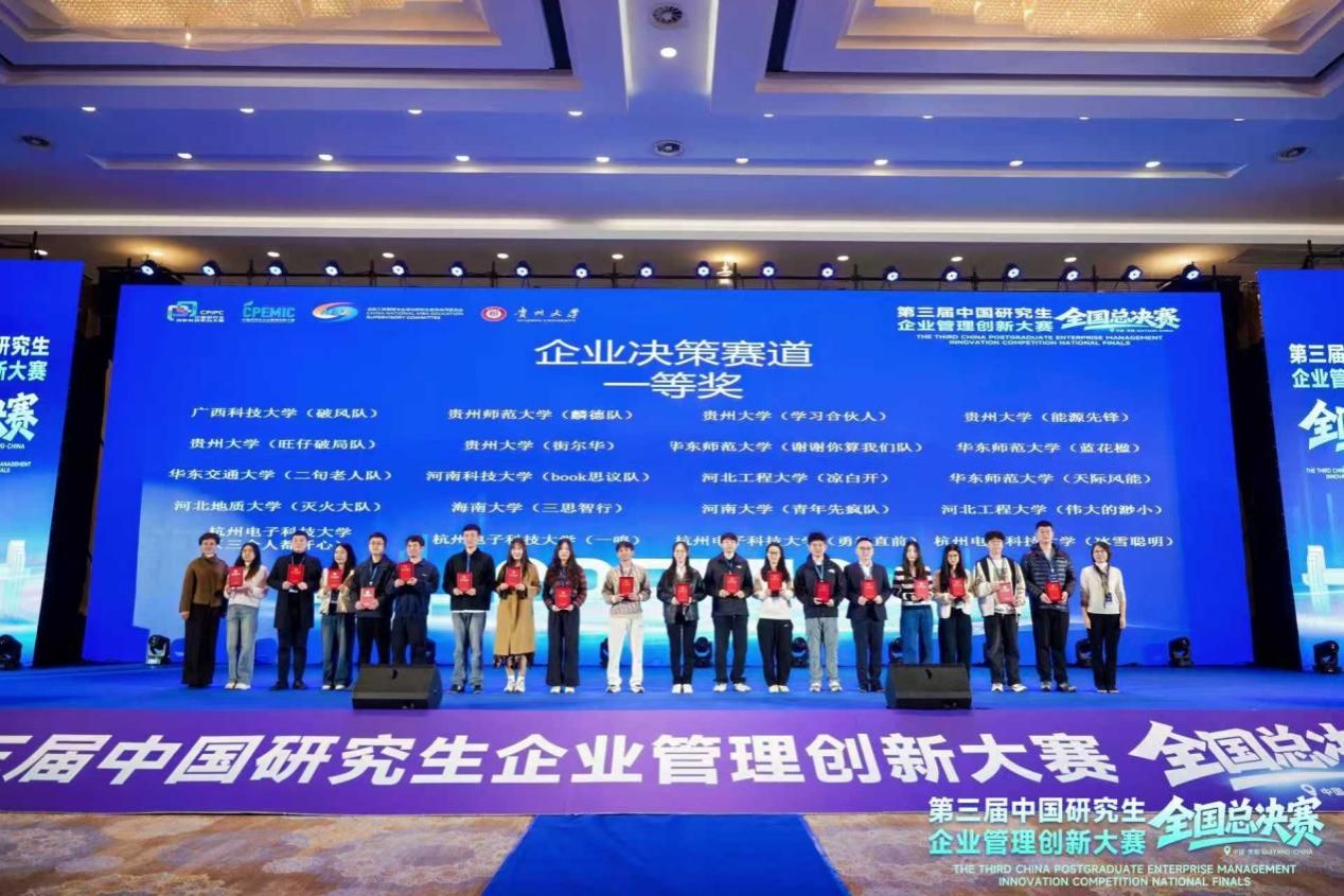 2025年11月7日-11月9日,由教育部学位管理与研究生教育司指导,中国学位与研究生教育学会、中国科协青少年科技中心、全国工商管理专业学位研究生教育指导委员会联合主办,贵州大学承办的第三届“中国研究生企业管理创新大赛”全国总决赛在贵阳圆满举行。大赛自2025年8月启动以来,共吸引全国321家研究生培养单位的4176支队伍,超18000名师生报名参赛,参赛规模创历史新高,来自全国150所高校的411支队伍晋级全国总决赛。