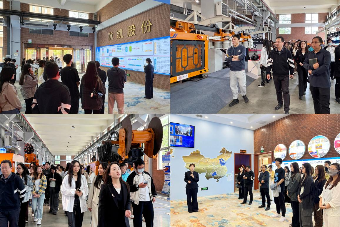下午14时50分,参访师生准时在冀凯股份智慧展厅门口集合签到,正式开启参访之旅。在企业专业讲解员的引导下,师生们首先走进智慧展厅,系统学习了解企业发展历程、核心业务布局、全信息化智能管理系统WIMS、先进核心设备技术优势与特色企业文化。大家全神贯注聆听讲解、交流探讨,深入感知企业在高新技术研发、智能制造落地、数字化管理领域的创新实践成果。